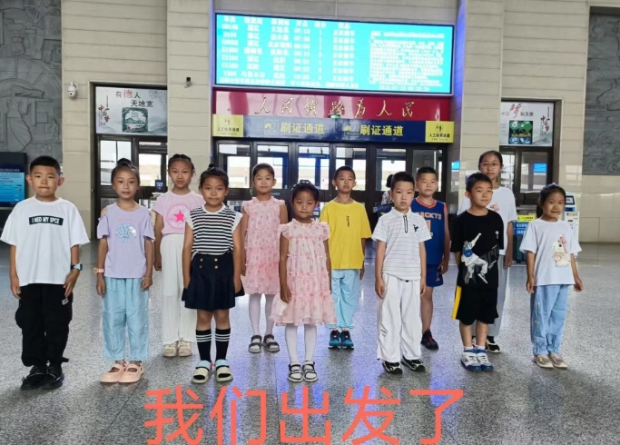 2023年暑假,女儿与同伴们在彰武站候车厅准备出发前往大连参加小提琴比赛。