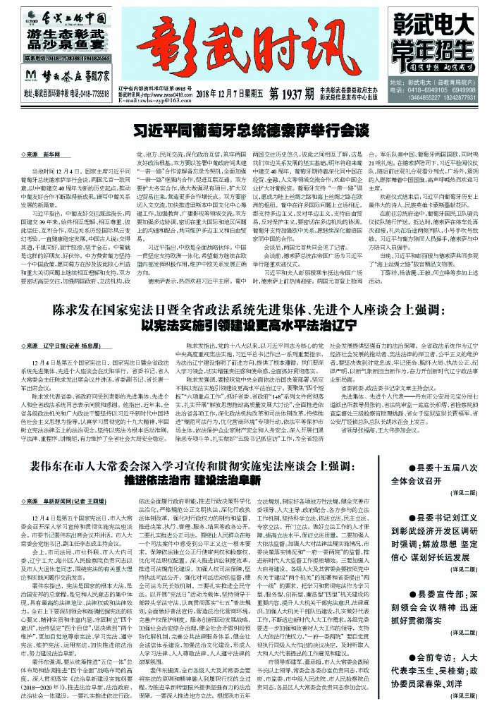 陈求发在国家宪法日暨全省政法系统先进集体、先进个人座谈会上强调:以宪法实施引领建设更高水平法治辽宁