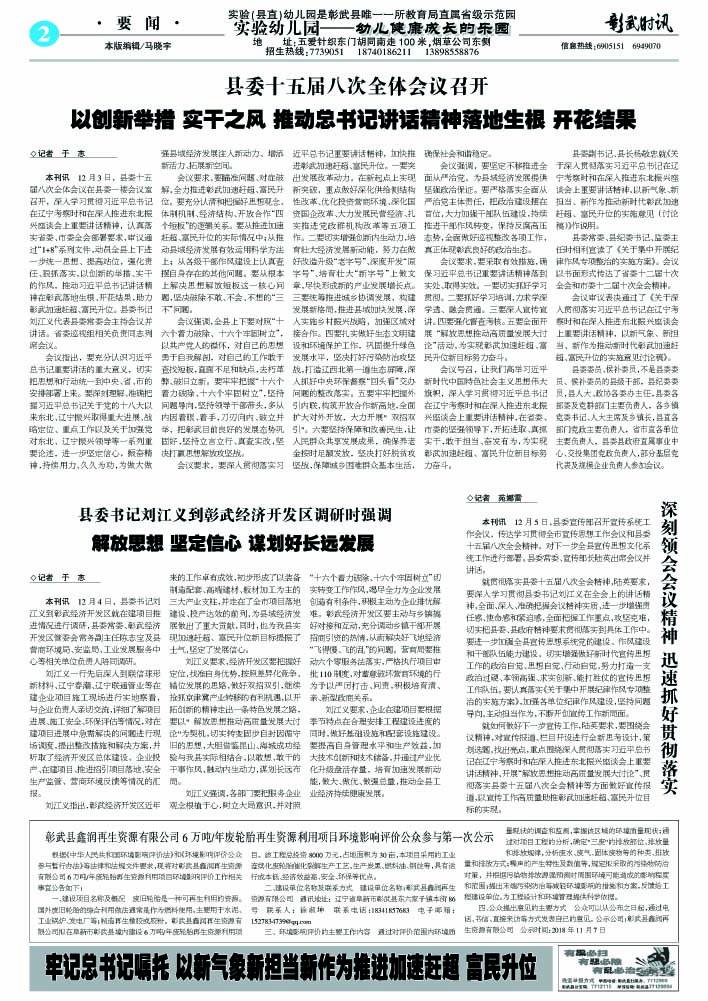 县委书记刘江义到彰武经济开发区调研时强调 解放思想 坚定信心 谋划好长远发展
