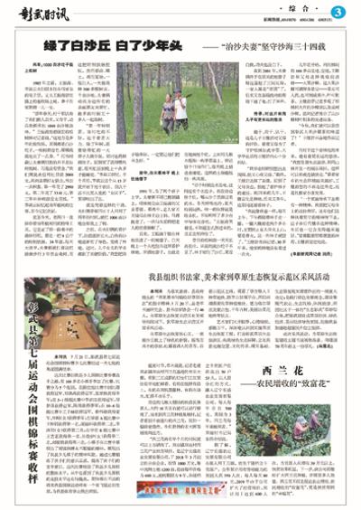 绿了白沙丘 白了少年头—— “治沙夫妻”坚守沙海三十四载