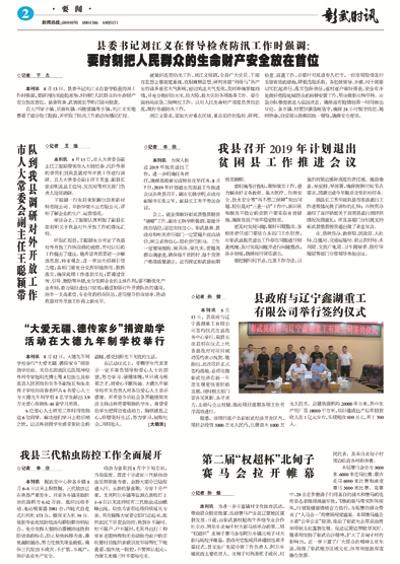 县委书记刘江义在督导检查防汛工作时强调:要时刻把人民群众的生命财产安全放在首位