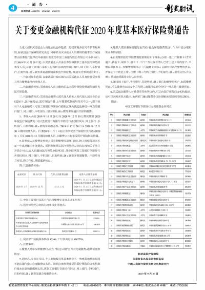 关于变更金融机构代征2020年度基本医疗保险费通告