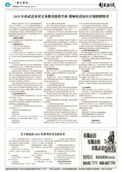 2019年彰武县农村义务教育阶段学校 教师特设岗位计划招聘简章