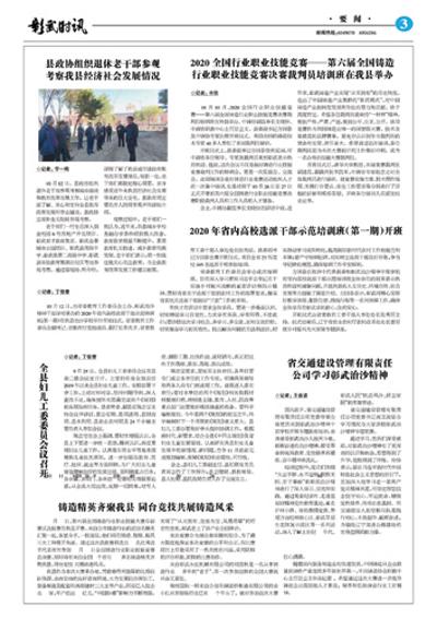 2020全国行业职业技能竞赛——第六届全国铸造 行业职业技能竞赛决赛裁判员培训班在我县举办
