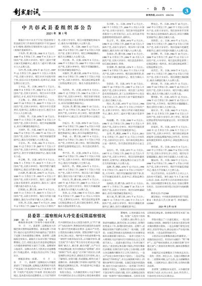 中共彰武县委组织部公告 2021年 第1号
