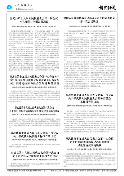 彰武县第十九届人民代表大会第一次会议 关于彰武县人民代表大会常务委员会 工作报告的决议(2021年12月10日彰武县第十九届人民代表大会第一次会议通过)