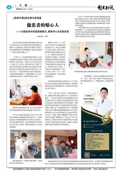 《阜新日报》综合版头条报道 做患者的贴心人——记彰武县中医医院副院长、康复中心主任赵庆波