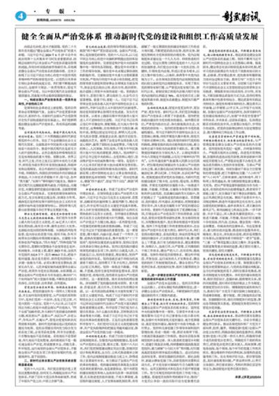 健全全面从严治党体系 推动新时代党的建设和组织工作高质量发展