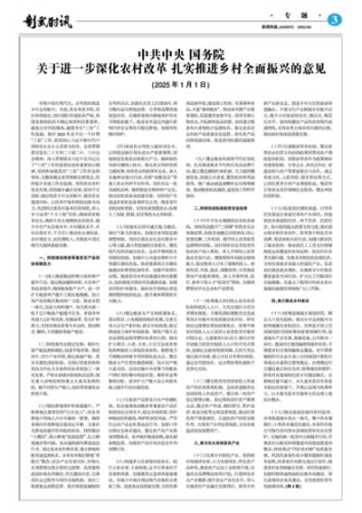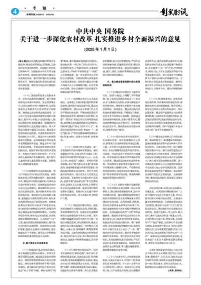 中共中央 国务院 关于进一步深化农村改革 扎实推进乡村全面振兴的意见(2025年1月1日)